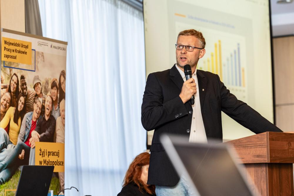 Ważnym tematem poruszanym na konferencji była aktualna sytuacja migrantów w Małopolsce – najnowsze badania w tym zakresie przedstawił prof. UEK Konrad Pędziwiatr, ekspert zajmujący się od lat tematyką migracji, religii i etniczności.