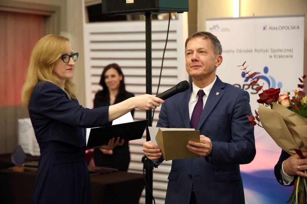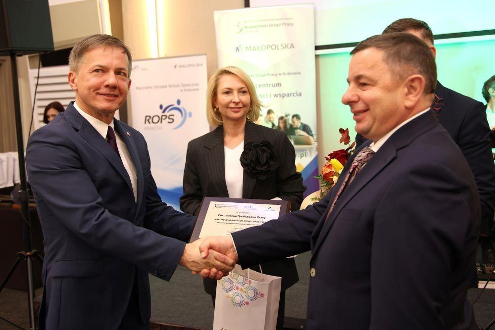 Dzisiejsze wydarzenie to wyjątkowa okazja do tego, żeby uhonorować tych, którzy się nie tylko nastawiają na rozbudowę i powodzenie przedsiębiorstw, ale którzy są zainteresowani harmonijnym łączeniem celów biznesowych z troską o pracowników, czyli o swój najcenniejszy zasób. To zasługuje na szczególne uznanie, ponieważ Państwo wyróżniają się swoją wrażliwością. Samorząd Województwa Małopolskiego docenia Państwa wysiłki i inicjatywy. Dziękuję członkom kapituły konkursowej za Waszą niełatwą, wypełnioną skrupulatną analizą pracę. To dzięki niej poznaliśmy bliżej nominowanych i w końcu laureatów tego konkursu. To również dzięki zaangażowaniu dyrektorów i pracowników Regionalnego Ośrodka Polityki Społecznej w Krakowie oraz Wojewódzkiego Urzędu Pracy powstała niezwykle dobra atmosfera do współpracy. Wyróżnione firmy dają ogromny wkład w rozwój przedsiębiorczości w Małopolsce. To niezwykle ważne, ponieważ nasz region został uhonorowany przez międzynarodowe gremium tytułem Europejskiego Regionu Przedsiębiorczości już po raz drugi. Cieszymy się, ponieważ w tej wysokiej ocenie Małopolski macie Państwo swój ogromny udział. Serdecznie gratuluję nominowanym i wyróżnionym w plebiscycie laureatom- powiedział Wojciech Piech, Pełnomocnik Marszałka Województwa Małopolskiego ds. przedsiębiorczości.