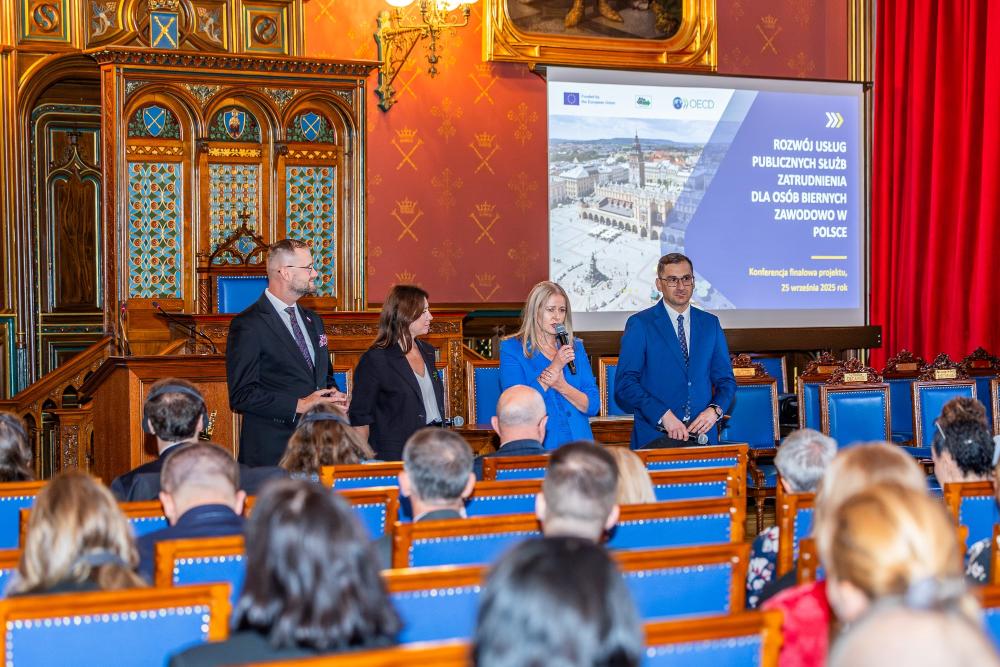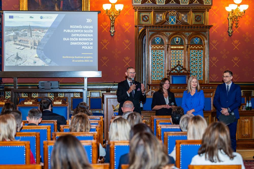 25 września w auli Collegium Novum Uniwersytetu Jagiellońskiego w Krakowie odbyła się konferencja, której organizatorem był Wojewódzki Urząd Pracy w Krakowie we współpracy z Wojewódzkimi Urzędami Pracy z Gdańska, Olsztyna, Opola oraz Organizacją Współpracy Gospodarczej i Rozwoju. Partnerem wydarzenia było Centrum Ewaluacji i Polityk Publicznych Uniwersytetu Jagiellońskiego. Organizatorzy wydarzenia zaprezentowali raport końcowy z projektu „Rozwój usług publicznych służb zatrudnienia dla osób biernych zawodowo w Polsce”.